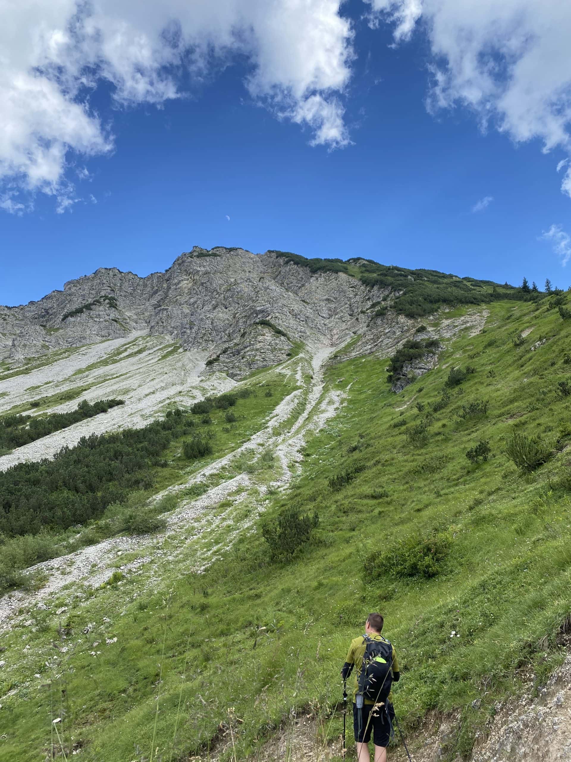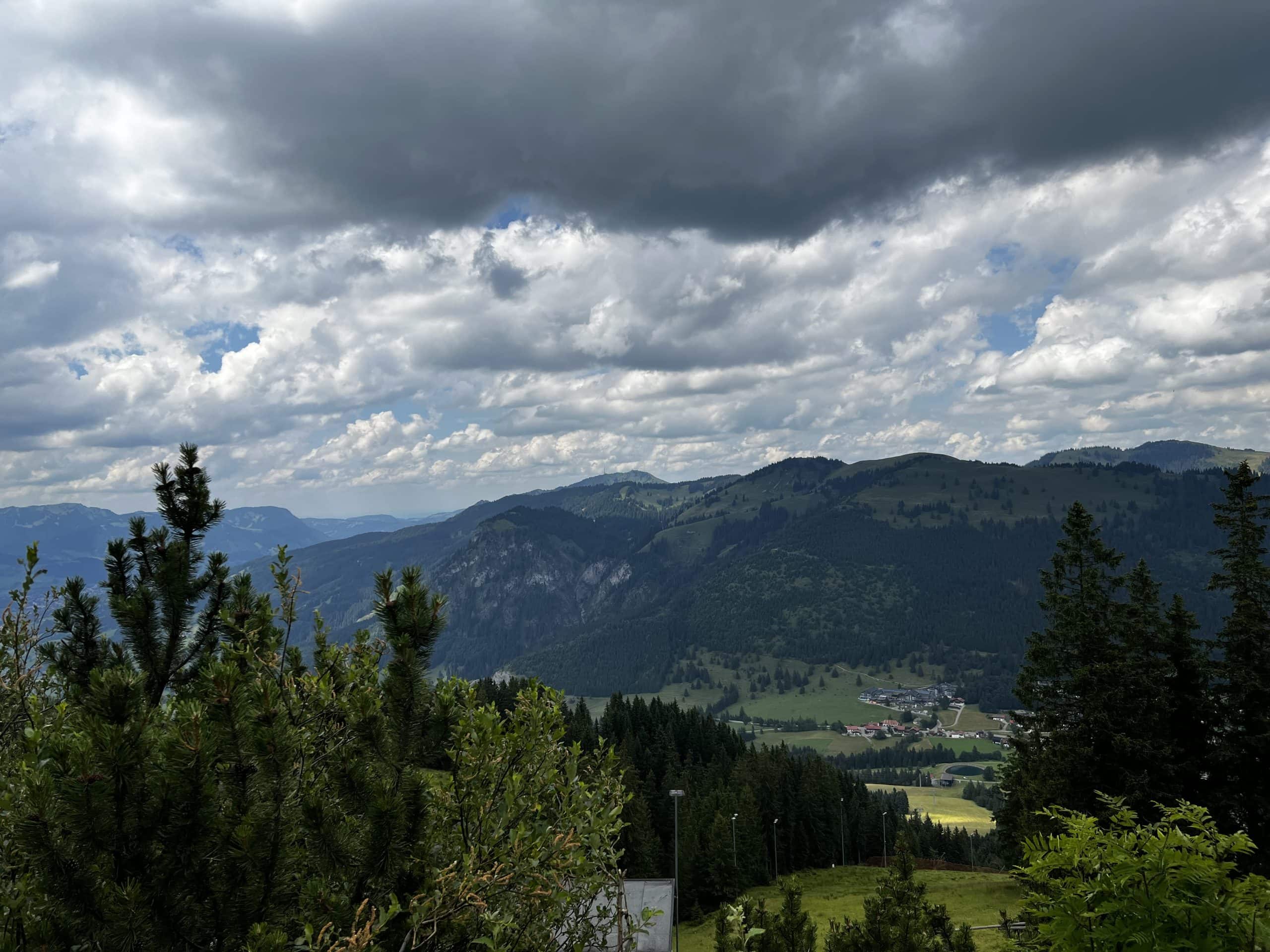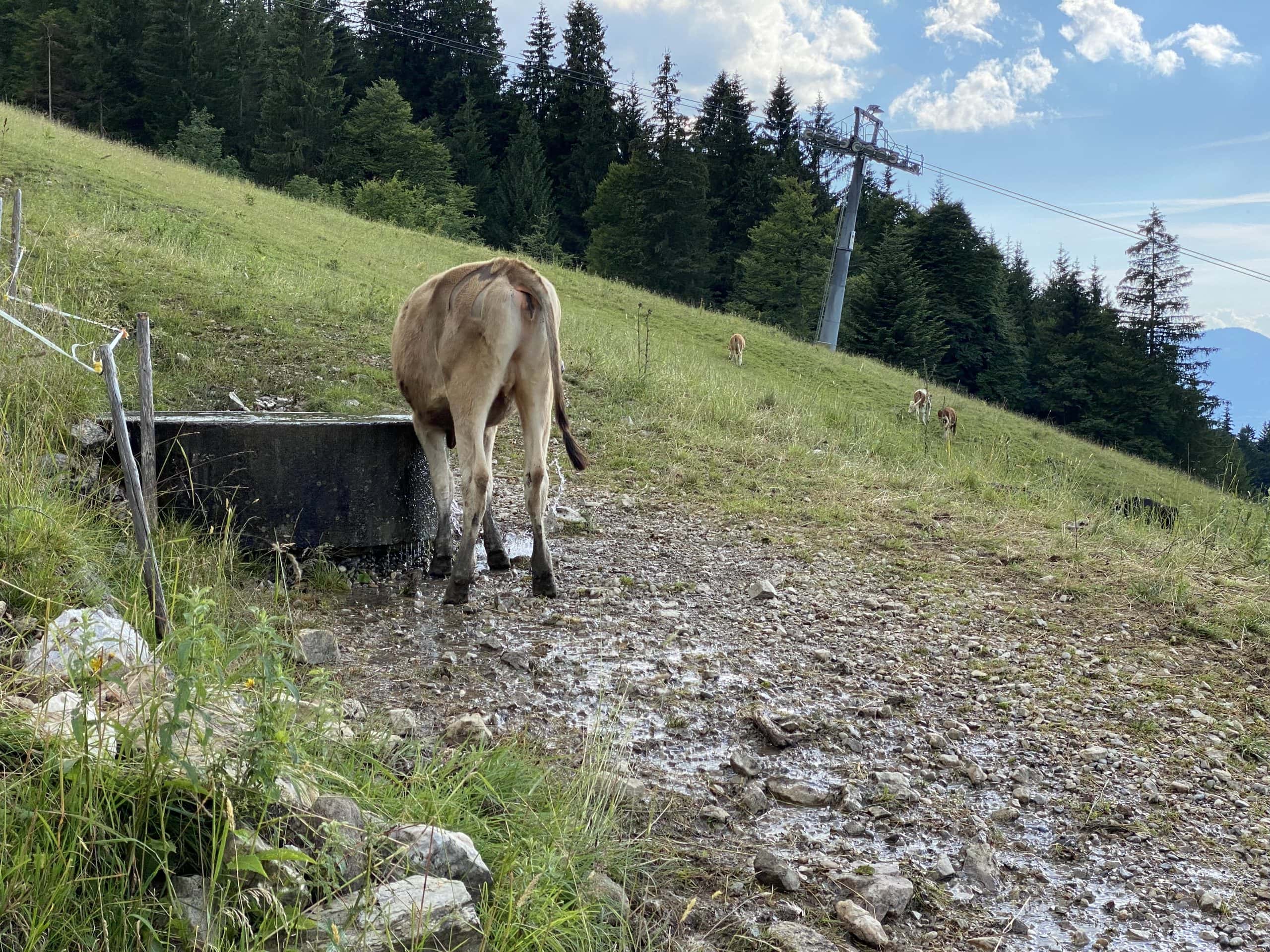 Der Rückweg ins Tal dauerte etwas länger, da die Bahn schon geschlossen hatte. Wir stiegen also vom Gipfel runter in Richtung Bergbahn und von dort aus weiter über einen Pfad und Weiden mit Kühen zurück ins Tal.