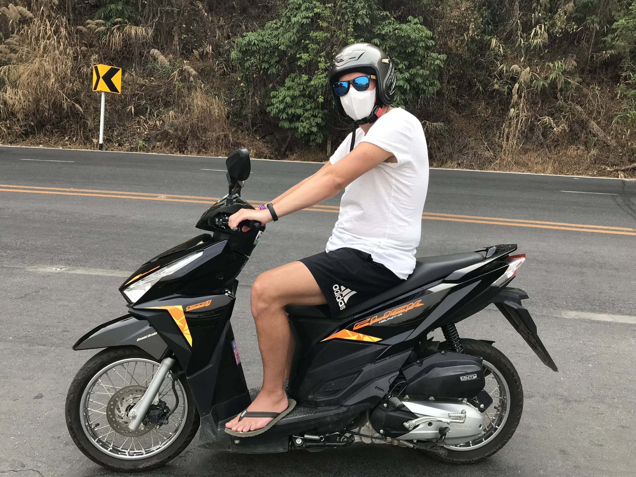 Ausgeschlafen und frisch ging es am vierten Tag nach dem Frühstück bei unserem Standardladen „Le Brunch“ auch schon mit dem Roller los. Wir fuhren raus aus Chiang Mai und begaben uns auf den Weg nach Westen in Richtung Wat Phra Thrat Doi Suthep, einem Kloster in den Bergen neben Chiang Mai auf einer Höhe von 1400 Metern, die Serpentinen ließen sich aufgrund der guten Straße ohne Probleme mit dem Roller überwinden.