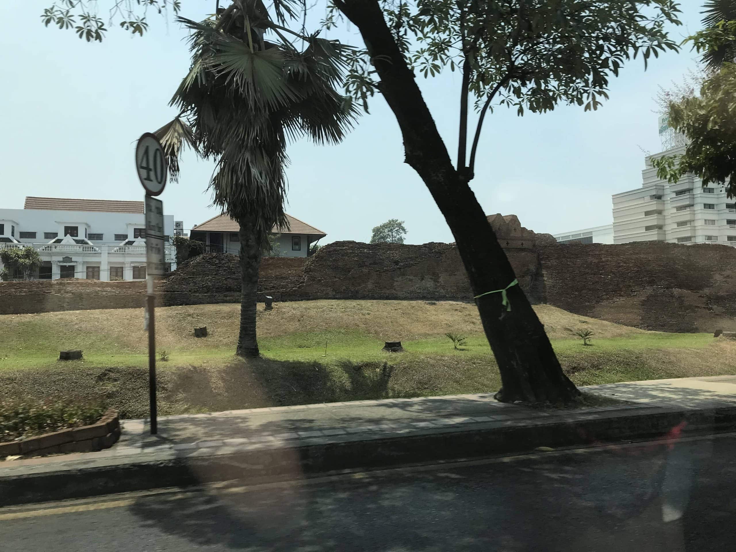 Am ersten Tag folgten wir unserem schon gewohnten Plan für neue Städte, wir suchten uns Lokale in der Umgebung zum Frühstücken, schauten wo der nächste 7/11 Markt war und beschafften uns einen Roller für die nächsten Tage. Dann freundeten uns mit der hiesigen Polizei an, die uns direkt nach dem Ausleihen anhielt und anschließend kümmerten wir uns um die zu besuchenden Sehenswürdigkeiten und planten etwas unsere Tage im Voraus. Abends fuhren wir in die „Altstadt“ von Chiang Mai, diese liegt innerhalb der alten Stadtmauern aus dem 15. Jahrhundert. Die Stadtmauer hat 4 Haupttore und sieht auf Google Maps wie ein perfektes Viereck aus, jede Seite des Viereck hat in der Mitte ein Stadttor und an der Außenseite der Mauer führt neben der Straße noch ein Wassergraben entlang.