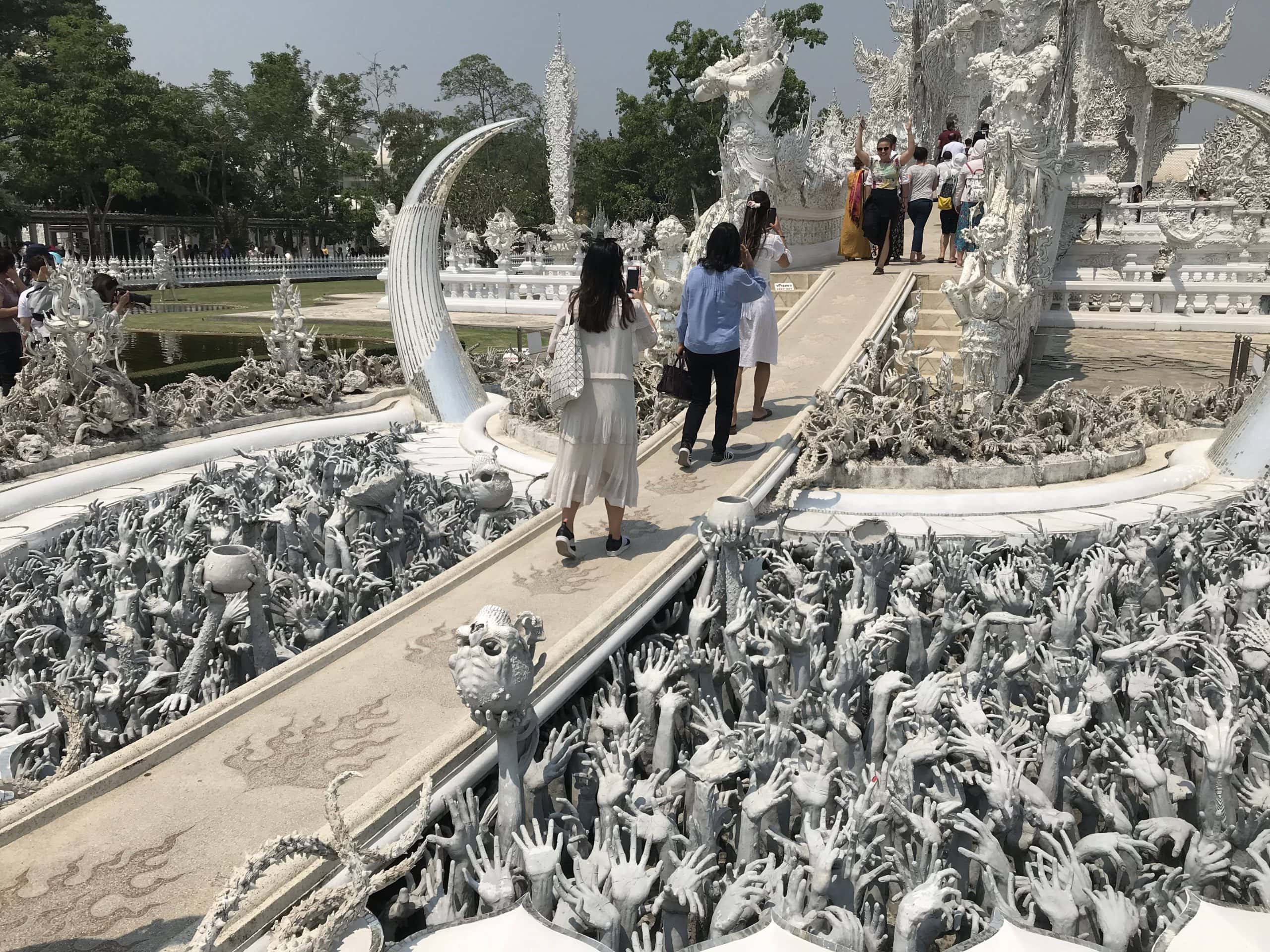 Am Morgen von Tag 3 machten wir uns auf zu unserem ersten Trip, angefangen mit dem White Tempel, der auf einem riesigen Gelände stand und komplett überlaufen von Touristen war.